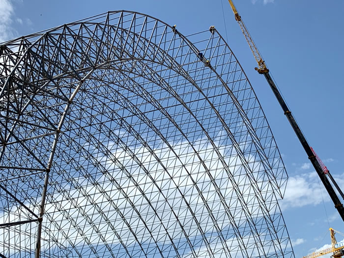 (2)网架加工前应对现场尺寸进行复测,确认无误后方可进行加工、安装;网架制作、运输、安装应遵守《空间网格结构技术规程》JGJ7-2010、《钢网架江都螺栓球节点》JG/T 10-2009、《钢网架江都螺栓球节点用高强度螺栓》 GB/T 16939-2016、《江都钢结构江都工程江都施工规范》 GB50755-2012、《江都钢结构江都工程施工质量验收标准》 GB50205-2020。